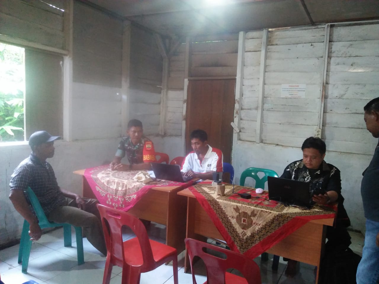 Dairi24jam || Tanah Pinem—Bertempat Di Kantor Desa Sinar Pagi, Babinsa Koramil 05/Tanah Pinem Kodim 0206/Dairi Serda Andianto melaksanakan kegiatan rutin, yang merupakan salah satu bagian tugas pokoknya yaitu melaksanakan interaksi secara langsung dengan Kades Dan Perangkat Desa Sinar Pagi Kec.Tanah Pinem Kab.Dairi.