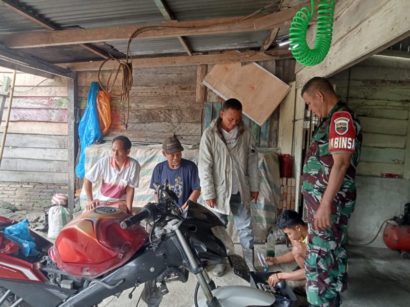 Dairi24jam || Sukaramai—Babinsa Koramil 06/Kerajaan Sertu P.Lumban Raja giat komsos dengan pemilik usaha bengkel motor di desa binaan sekaligus memberikan semangat dan motivasi kepada pemilik bengkel yang berada di Desa Sukaramai, Kecamatan Kerajaan, Kabupaten Pakpak Bharat,Sabtu (11-11-2023)..