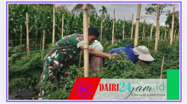 DAIRI24JAM —Babinsa Koramil 05/Tanah Pinem Serda Andianto melaksanakan Komunikasi Sosial (Komsos) sekaligus memberi motivasi kepada petani cabe di desa sinar pagi, Kecamatan Tanah Pinem, Kabupaten Dairi-Sumut, Senin (24-03-2025).