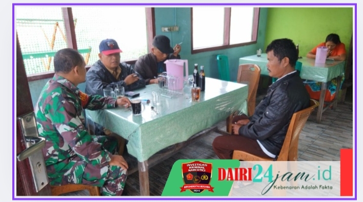 Dairi24jam | Sumbul – Personel Bintara Pembina Desa anggota Koramil 01/ Sumbul jajaran Kodim 0206/ Dairi, Serda Torop Samosir melaksanakan kegiatan komunikasi sosial (komsos) yang dilaksanakan di salah satu warung tepatnya di Kelurahan Pegagan Julu 1 Kecamatan Sumbul, Kabupaten Dairi – Sumut, Selasa (12/11/2024).