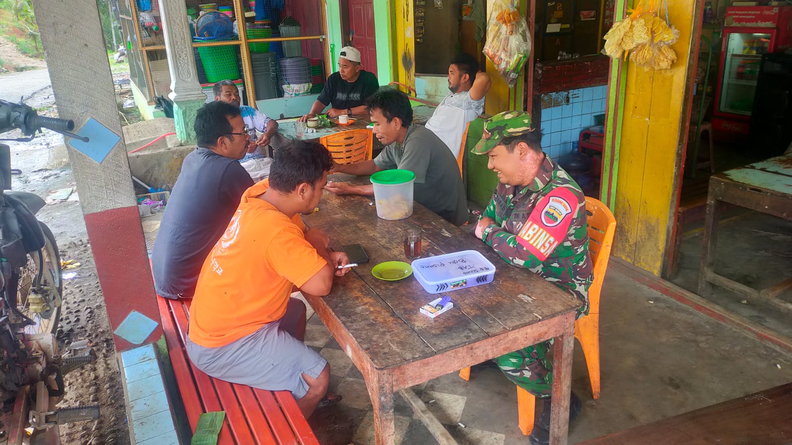 Dairi24jam || Tanah Pinem—Sertu Hasanadi Babinsa Koramil 05/Tanah Pinem melaksanakan Komunikasi Sosial (Komsos) dengan warga binaan di warung kopi dengan warga yang bernama man , menang ginting ,sukaimi dan Paulus tarigan .yang terdapat di Dusun satu Desa Kuta Buluh, kecamatan Tanah Pinem, Kabupaten Dairi, Kamis 04-05-2023.