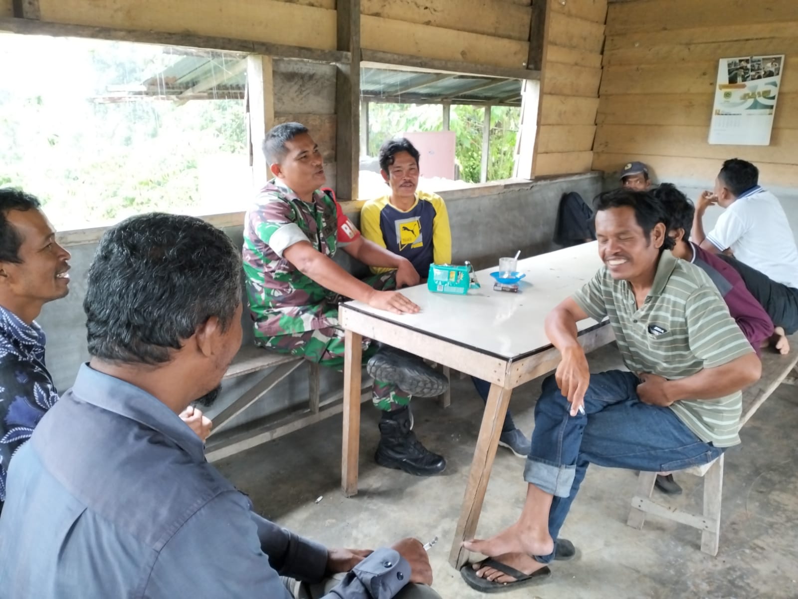 Kali ini, Babinsa Serda Julianto Manik memanfaatkan warung Kopi untuk berkomunikasi dengan warga binaannya. Selain itu, Komsos juga dilaksanakan dengan cara melaksanakan Anjangsana ke rumah-rumah warga.