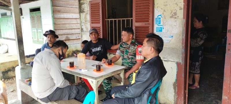 Dairi24jam || Sibongkaras—Demi memberikan rasa keamanan dan ketentraman masyarakat di wilayah dan Bentuk keakraban antara Babinsa Koramil 03/Parongil Serda Jhon Very Tinambunan dan Bhabinkamtibmas Polsek parongil Bripka Arambel Samosir melaksanakan kegiatan komsos dan patroli menyempatkan diri untuk ngopi bersama dengan masyarakat desa Bongkaras kecamatan Silima Pungga Pungga Kabupaten Dairi,Sabtu (29-07-2023)..