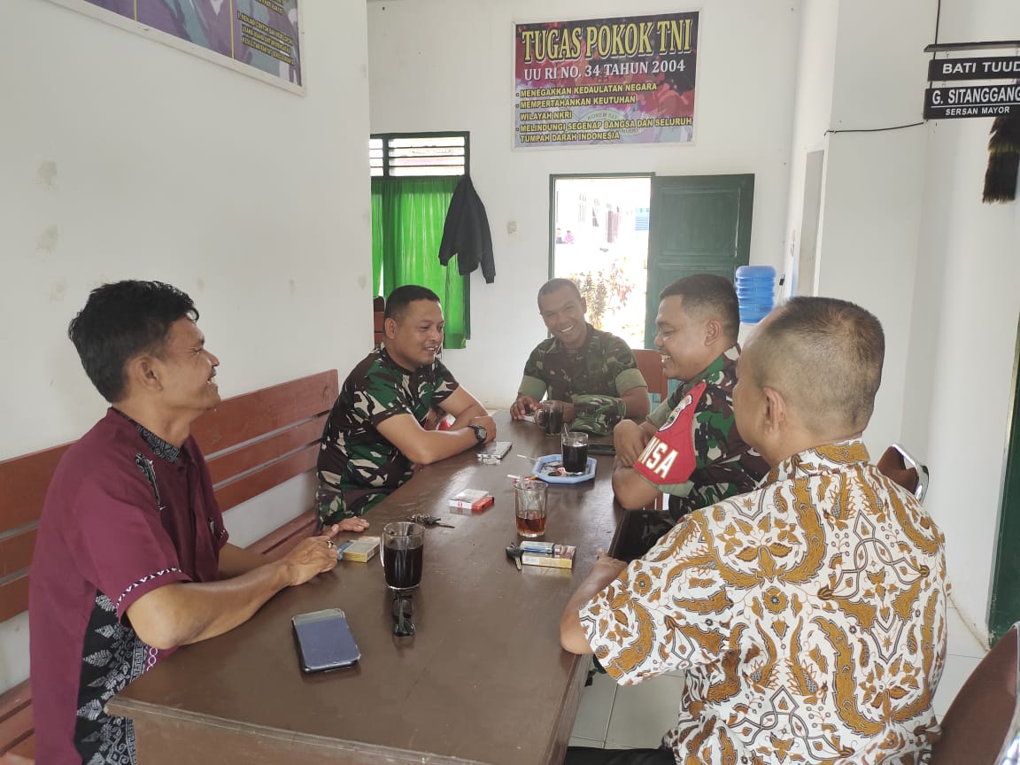 Ngopi Bareng Di Makoramil,Personil Babinsa Jalin Keharmonisan Dengan Kepala Desa