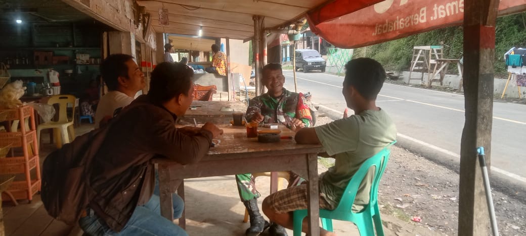 Seperti yang dilakukan Babinsa Koramil 05/Tanah pinem , Serda J simbolon melakukan Komunikasi Sosial (Komsos) bersama warga di warung Pak Tarigan di Desa Kuta buluh Kecamatan Tanah pinem,Kab Dairi.Jumat (07-07-2023)..