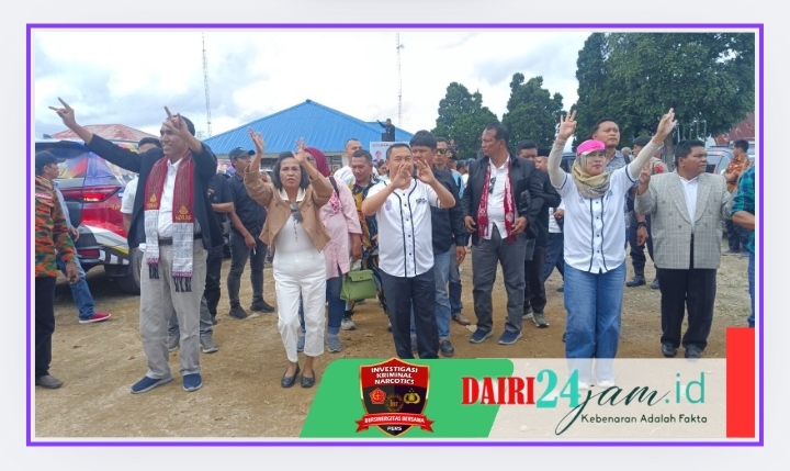 Dairi24jam | Parbuluan Disambut warga pendukung Pasangan Nomor 3  Danjor – Bintang sampaikan orasi politik di hadapan seluruh masyarakat Kecamatan Parbuluan, Kabupaten Dairi – Sumut, Rabu (6/11/2024).