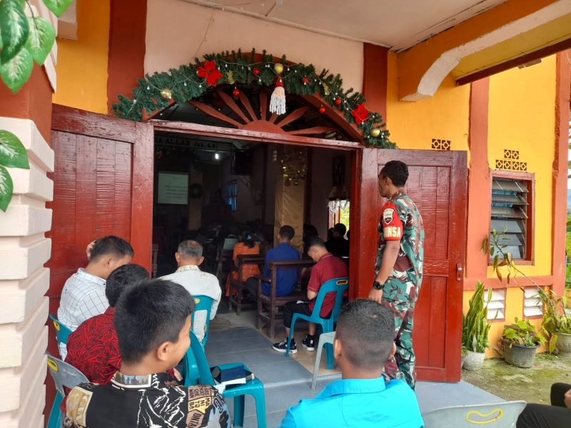 Dairi24jam || Sumbul – Babinsa Koramil 06/Kerajaan Kodim 0206/Dairi,Serda Haryoko melaksanakan pengamanan rumah ibadah di salah satu gereja di Desa Sukaramai.