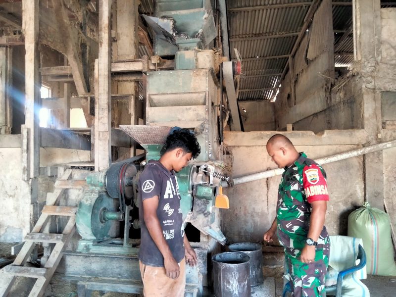 Dairi24jam||Sumbul – Untuk mendukung dan menjaga ketahanan pangan wilayah, Serda Eriston Simbolon Babinsa Koramil 01/Sbl Kodim 0206/Dairi melakukan pengecekan untuk memastikan stok gabah dan beras di kilang Padi