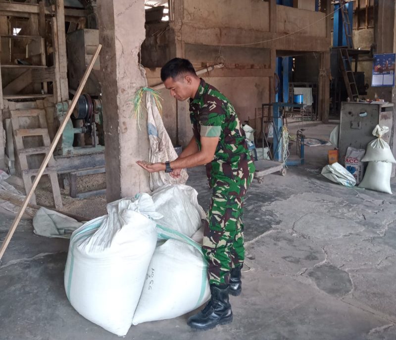 Dairi24jam || Sumbul – Untuk mendukung dan menjaga ketahanan pangan wilayah, Serda Estian Simbolon Babinsa Koramil 01/Sumbul Kodim 0206/Dairi melakukan pengecekan untuk memastikan stok gabah dan beras di kilang Padi