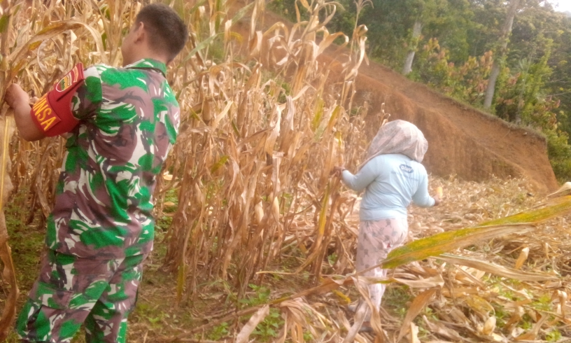 Peduli Dengan Masyarakat Babinsa Koramil 05/TP Dampingi Warga Panen Jagung