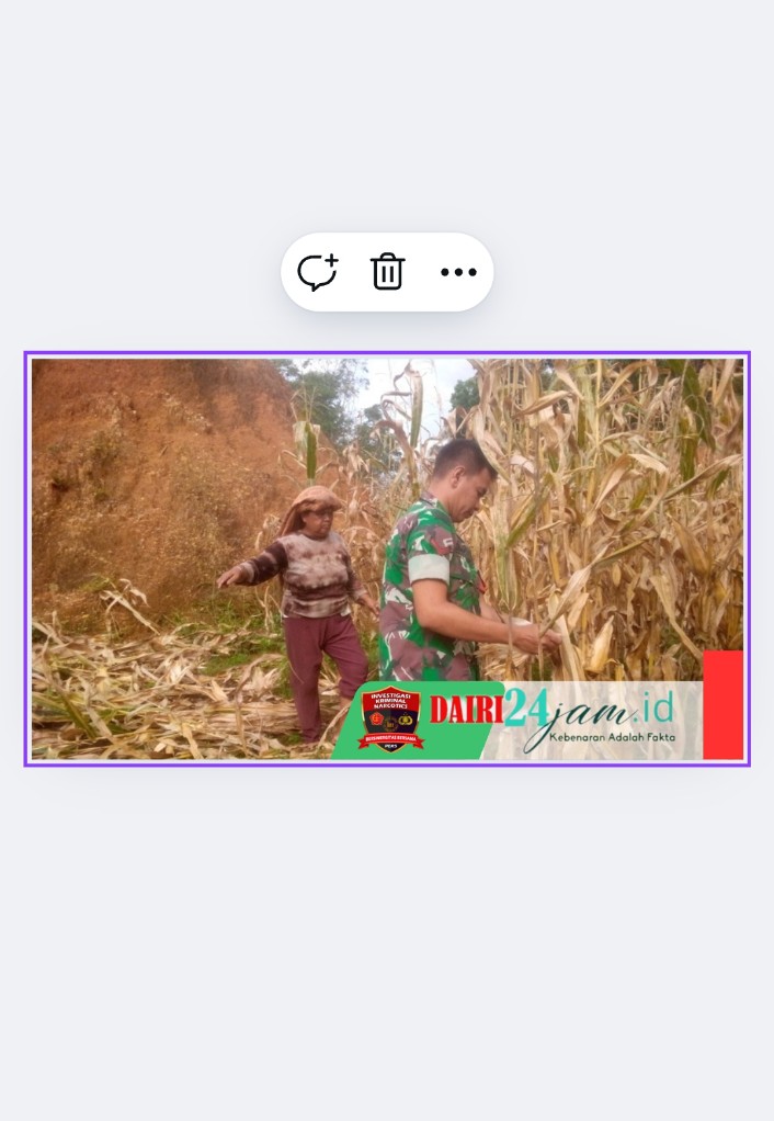 Dairi24jam|| Tanah Pinem- Babinsa Koramil 05/Tanah Pinem jajaran Kodim 0206/Dairi Kopda Baihaki melaksanakan pendampingan kepada petani dalam memanen jagung milik warga binaan di desa Renun Kecamatan Tanah Pinem Kabupaten Dairi,Senin(6/1/2025).