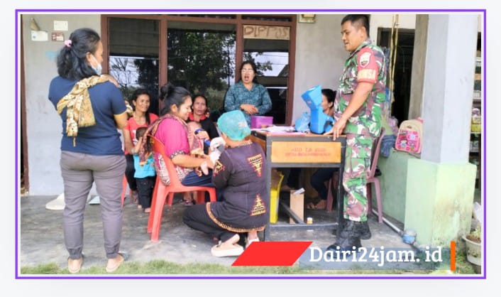 Dairi24jam || Pakpak Bharat—Serda Julianto Manik Babinsa Koramil 07/Salak Kodim 0206/Dairi ikut serta mendampingi kegiatan Posyandu Balita yang dilaksanakan Desa Boangmanalu, Kecamatan Salak Kabupaten Pakpak Bharat,Jumat (27/09/2024).