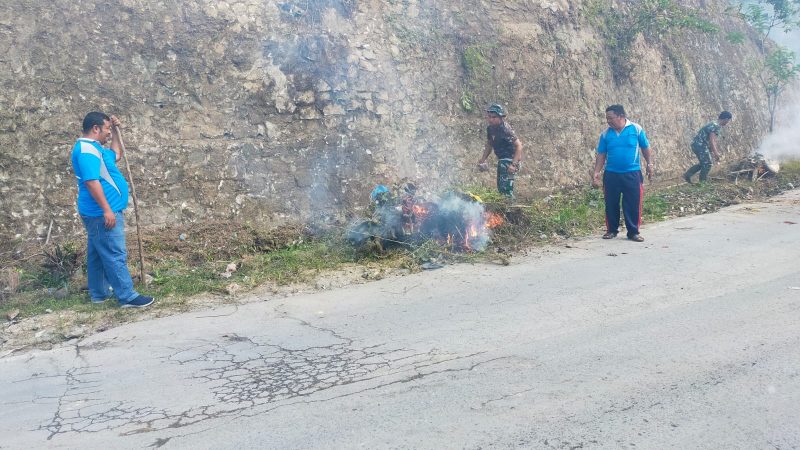 Dairi24jam || Tanah Pinem—Babinsa Koramil 05/Tanah Pinem Kodim 0206/Dairi Sertu Hasanadi gotong royong bersama kadus desa Kuta buluh .