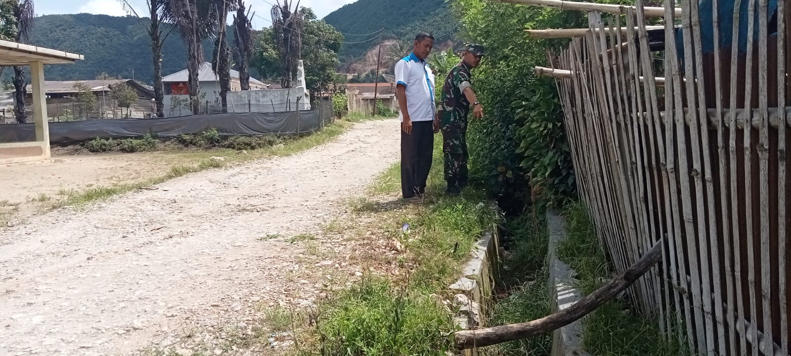 Dairi24jam || Adian Nangka—Babinsa Koramil 03/Parongil Sertu G.Naibaho bersama kadus Desa Adian Nangka meninjau pekarangan dan badan jalan untuk kegiatan kerja bakti sosial membersihkan jalan di desa Adian Nangka , Selasa (25-07-2023)..