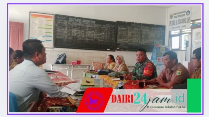 DAIRI24JAM || Pakpak Bharat—Babinsa Koramil 06/Kerajaan Serda Sakkarias Haloho melaksanakan Komunikasi Sosial (Komsos) dan bersilaturahmi ke sekolah SD negeri 053944 Prongil, yang ada di Wilayah desa Tinada, Kecamatan Kerajaan, Kabupaten Pakpak Bharat-Sumut, Jumat (10-10-2025).