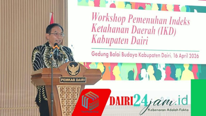 DAIRI24JAM  || SIDIKALANGBupati Dairi Vickner Sinaga yang diwakili oleh Asisten Pembangunan dan Perekonomian Junihardi Siregar, menghadiri dan membuka kegiatan workshop pemenuhan Indeks Ketahanan Daerah (IKD) Kabupaten Dairi pada Kamis (16/4/2026) di Balai Budaya Sidikalang. Workshop tersebut diadakan oleh Mercy Corps Indonesia yang bekerjasama dengan Pemkab Dairi dengan menghadirkan narasumber yakni Analis Kebencanaan Ahli Madya Direktorat Pemetaan dan Evaluasi Resiko Bencana Deputi Bidang Sistem dan Strategi BNPB Edy Surawan Purba, Kabid Pencegahan dan Kesiapsiagaan BPBD Provinsi Sumatera Utara MP. Naibaho.