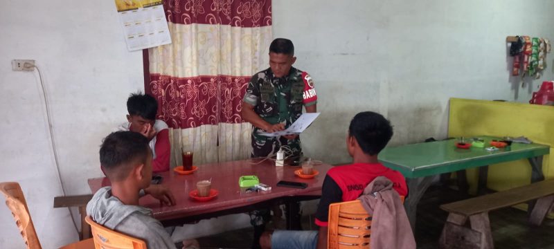 Dairi24jam || Sumbul – Personel Bintara Pembina Desa anggota Koramil 01/Sbl jajaran Kodim 0206/Dairi Serda Rejeki Sinaga melaksanakan kegiatan Komunikasi Sosial (Komsos) yang dilaksanakan di salah satu warung tepatnya di desa paropo Kecamatan Silahisabungan Kabupaten Dairi,Kamis (20/4/2023).