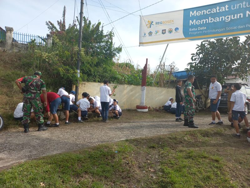 Dairi24jam || Pakpak Bharat—Personil Babinsa Koramil 06/Kerajaan Kodim 0206/Dairi bersama Siswa Siswi SMP N 1 Kerajaan melaksanakan kegiatan gotong royong di lingkungan sekolah bertempat di Sekolah SMP N 1 Kerajaan Kecamatan.Kerajaan, Kabupaten.Pakpak Bharat,Rabu (18-01-2023)..
