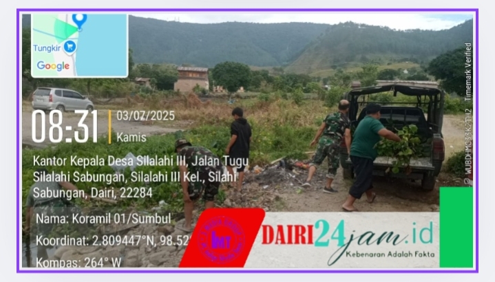 DAIRI24JAM  – Personil Koramil 01/ Sbl di bawah Pimpinan Danramil Kapten inf MD.Lumbantoruan melaksanakan kegiatan Pembersihan enceng Gondok di perairan Tao silalahi yang merupakan bagian dari Danau Toba yang ada di Kecamatan Silahisabungan yang merupakan wilayah Teritorial Koramil 01/Sbl,Kamid (3/7/ 2025).