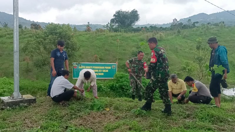 Dairi24jam || Pakpak BharatKoramil 07/Salak,Jajaran Kodim 0206/Dairi menggelar kegiatan karya bakti penanaman pohon di Wilayah Desa Boangmanalu Kecamatan Salak. Kabupaten Pakpak Bharat Rabu(07/12/2023).