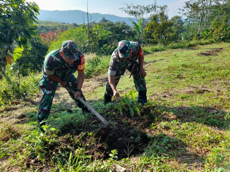 Dairi24jam || Kuta Saga—Personil Koramil 06/Kerajaan melaksanakan pembersihan lahan Penanaman pohon HUT TNI yang di laksanakan oleh Koramil 06/Kerajaan.