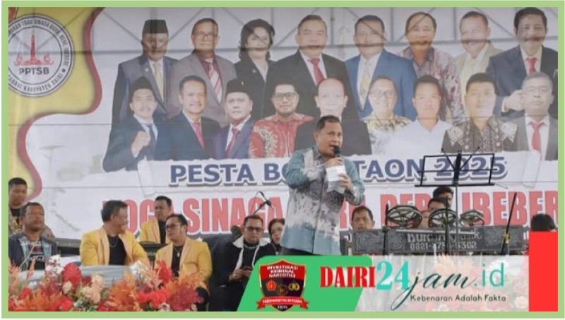 DAIRI24JAM – Penjabat Bupati Dairi, Surung Charles Bantjin hadiri pesta bona taon Punguan Toga Sinaga Boru, Bere, Ibebere (PPTSB) Cabang Kabupaten Dairi yang dilaksanakan di Stadion Baru, Panji Bako Kecamatan Sitinjo, Kabupaten Dairi – Sumut, Minggu (26/1/2025).
