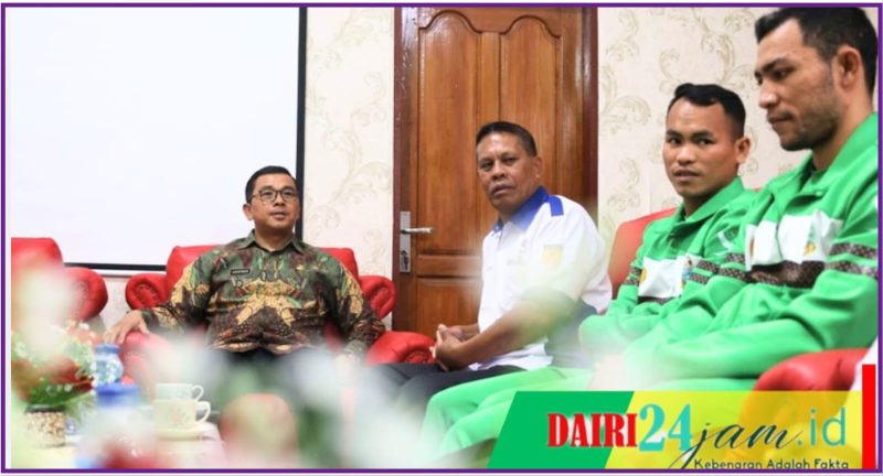 Dairi 24Jam | Toba – Penjabat Sementara (Pjs) Bupati Toba, Dr. Agustinus Panjaitan SSiT, MT menerima audiensi dari atlet karate asal Toba yang meraih medali emas di PON XXI Sumut – Aceh, bersama pelatih (sensei), sekaligus Ketua FORKI Sumut, Biduan Siahaan di ruang kerja Bupati Toba, Balige – Sumut, Sabtu (5/10/2024).