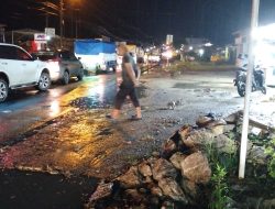 Personil dari Satuan Lalu Lintas Polres Dairi, di bantu warga berupaya mengevakuasi material dari badan jalan, sementara kendraan yang melintas dibatur secara buka tutup untuk meghindari kemacatan panjang.