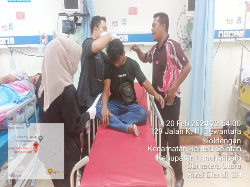 Bendahara DPD PJS Samuel Tampubolon saat berada di Rumah Sakit Selasa malam (20/02/2024) di Labuhanbatu Sumatera Utara.