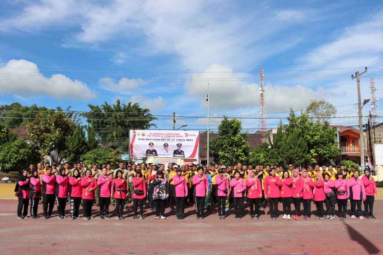 Dairi24jam || SidikalangMenyambut Hari Bhayangkara Ke-77 Tahun 2023, Polres Dairi Gelar Olahraga bersama bersama TNI-POLRI & Pemkab Dairi, Selasa Pagi (27-06-2023) berlokasi di Halaman Mapolres Dairi.
