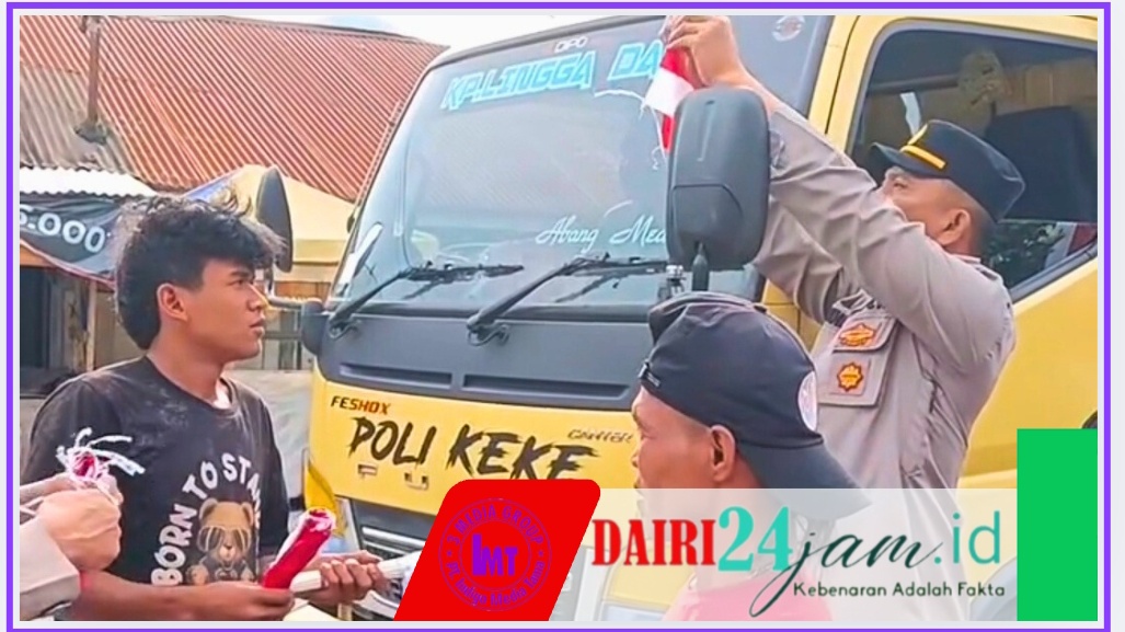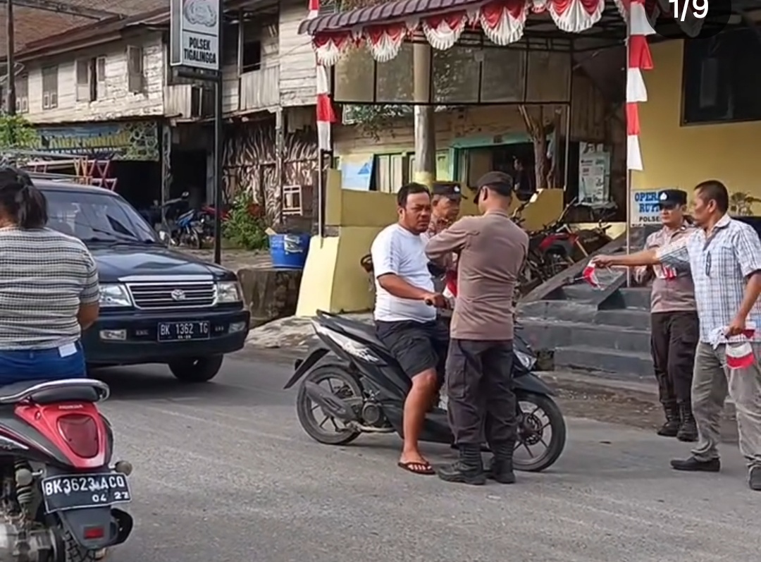 Dairi24jam|| Tigalingga- Dalam rangka menyambut HUT RI yang ke 80 , personil Polsek Tigalingga di bawah Pimpinan IPTU Parlindungan Lumban Toruan SH melaksanakan kegiatan oembagian dan pemasangan bendera  merah putih kepada para pengendara yang melintasi jalan di depan Mapolsek Tigalingga Kamis(07/08/2025).