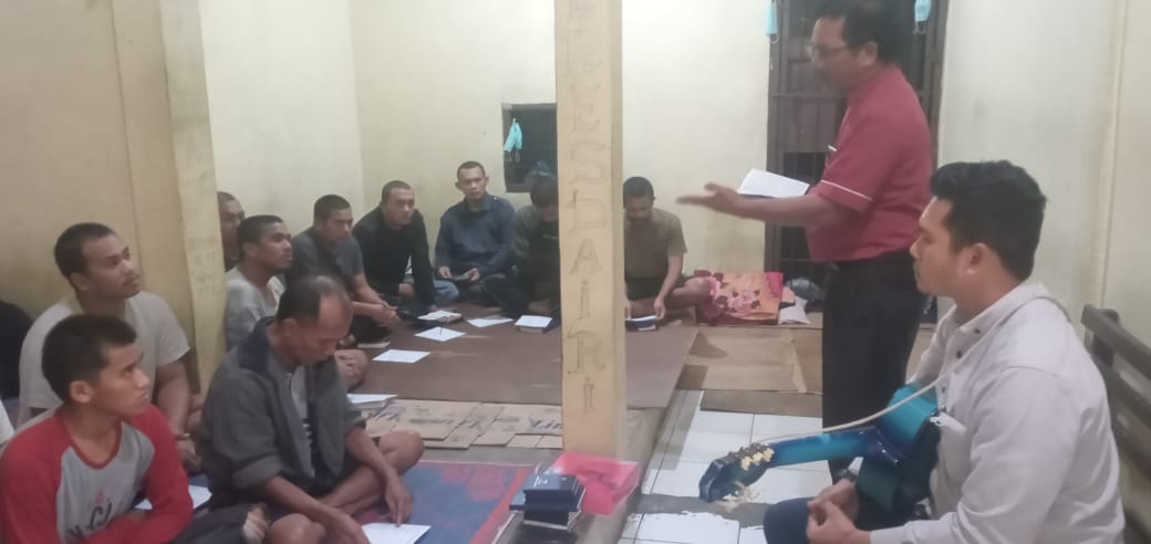- Dairi24jam || Sidikalang-–Kapolres Dairi Akbp Wahyudi Rahman, SH, SIK, MM melalui Ps Kasat Tahti Polres Dairi Ipda Harianton Sinaga melaksanakan siraman rohani pembinaan rohani dan mental bagi Tahanan yg beragama Nasrani pada minggu sore 02/10/22 bertempat didalam Sel RTP Polres Dairi Jl. Sisingamangaraja no. 08 kecamatan Sidikalang kabupaten Dairi.