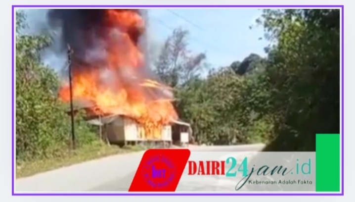 DAIRI24JAM — Satu unit rumah yang di jadikan tempat usaha di dusun lau gunung, Desa Pamah, Kecamatan Tanah Pinem, Kabupaten Dairi hangus terbakar, Selasa (22-07-2025) sekitar pukul 14.22 wib.