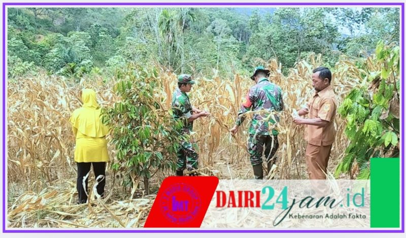 Dairi24jam|| Tanah Pinem- Babinsa Koramil 05/Tanah Pinem jajaran Kodim 0206/ Dairi Serma Syahrizal Umri melaksanakan pendampingan terhadap warga binaan yang merupakan petani jagung sebagai bentuk dukungan terhadap petani dalam rangka meningkatkan hasil panen dan memastikan ketersediaan pangan,Kamis(14/8/2025).