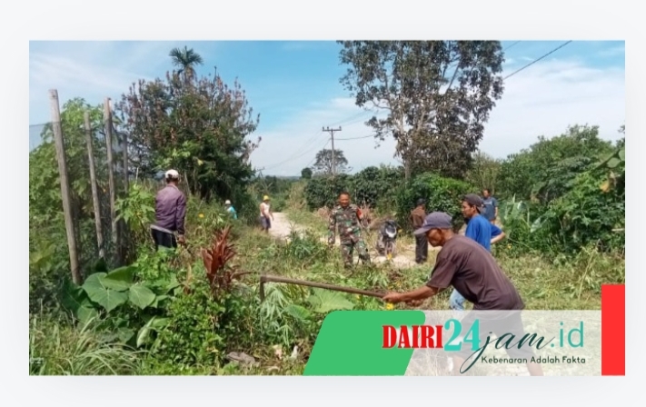 Dairi24jam || Sumbul – Babinsa Koramil 01/ Sumbul kodim 0206/Dr Sertu Adiramon ginting tampak semangat melaksanakan gotong royong bersama warga masyarakat membersihkan semak belukar di Desa pegagan Julu V Kecamatan sumbul Kab Dairi,Sabtu (26-101-2024).