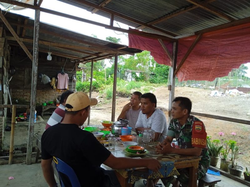 Kali ini, Babinsa Sertu H .Sitohang memanfaatkan warung Kopi untuk berkomunikasi dengan warga binaannya. Selain itu, Komsos juga dilaksanakan dengan cara melaksanakan Anjangsana ke rumah-rumah warga.