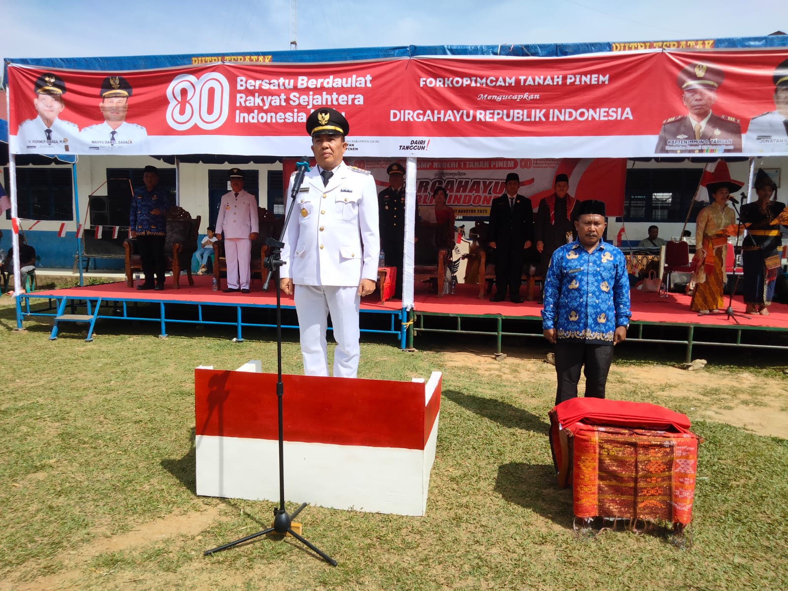 Dairi24jam|| Tanah Pinem-Semarak peringatan HUT ke-80 RI terasa hikmat dalam upacara bendera yang digelar di Lapangan SMP Negeri 1 Tanah Pinem Kecamatan Tanah Pinem Kabupaten Dairi ,Minggu(17/8/2025).