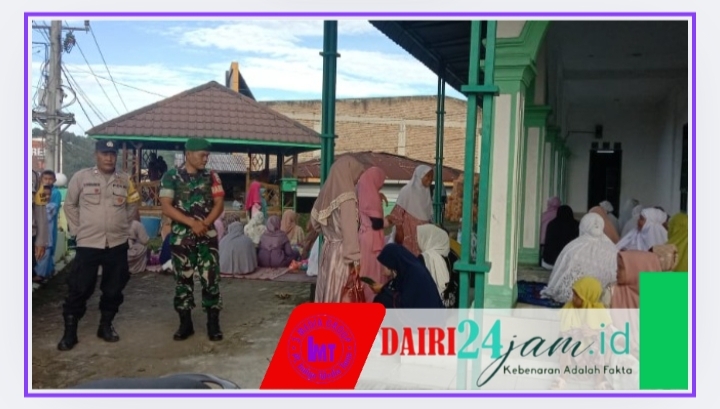 DAIRI24JAM – Babinsa Koramil 01/Sumbul Serda Rejeki Sinaga bersama dengan personil Polsek Sumbul melaksanakan pengamanan sholat Idul Adha di Masjid Al Ikhlas di kelurahan sumbul Kecamatan Sumbul, Kabupaten Dairi. Jumat ( 6/6 2025).