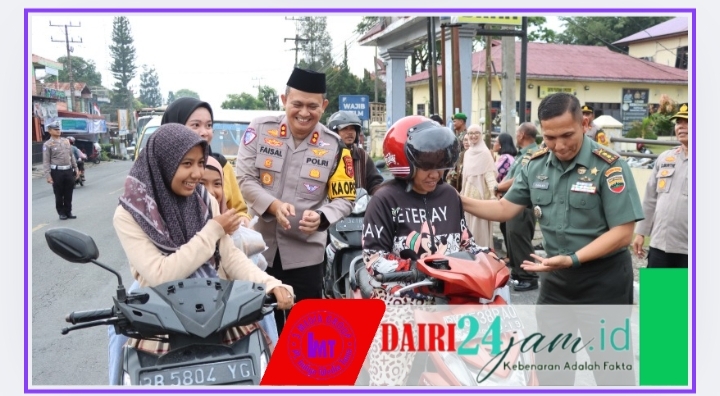 DAIRI24JAMPolres Dairi bersama Kodim 0206 Dairi menggelar aksi sosial berbagi takjil kepada pengguna jalan di depan Polres Dairi, Jl. SM Raja, Kecamatan Sidikalang, Kabupaten Dairi, pada Kamis (28/3/2025).