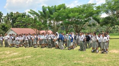 Dairi24jam || Pardamean—Babinsa Koramil 03/Parongil Serda Roni Hutasoit bersama Bhabinkamtibmas polsek buntu raja Aipda P.Simamora dan Aipda B.Sirait melaksanakan komsos dengan memberikan materi wawasan kebangsaan (Wasbang) kepada siswa/siswi di SMU Negeri Pardamean, Kamis (13/07/2023).