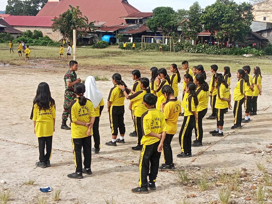 Dairi24jam || Sumbul -Babinsa Koramil 01/Sbl Koptu W.F.Sitorus melaksanakan pembinaan latihan PBB bertempat di lapangan sekolah SMP Negri 1Sumbul Kelurahan pegagan julu 1 kecamatan Sumbul ,Kamis (16/11/2023).