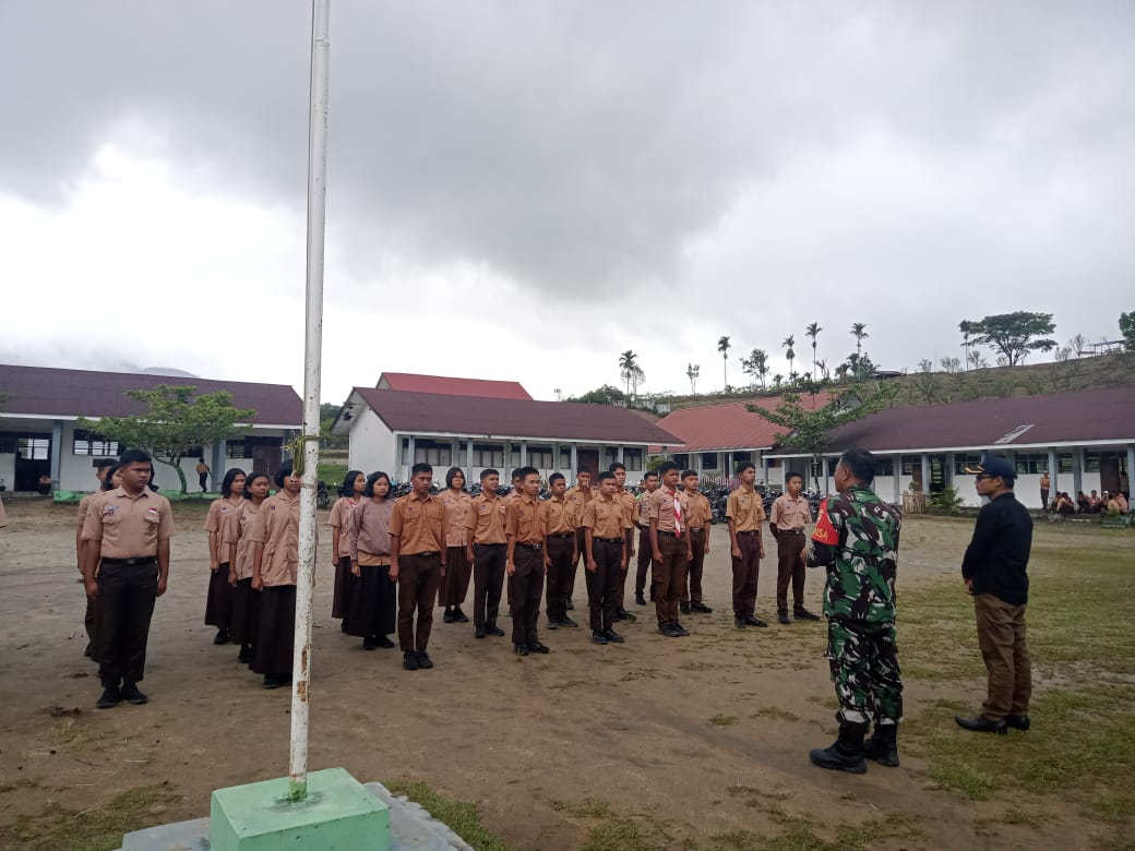 Babinsa selalu aktif memberikan materi wawasan kebangsaan kepada generasi muda serta selalu melatih peraturan baris berbaris di sekolah.
