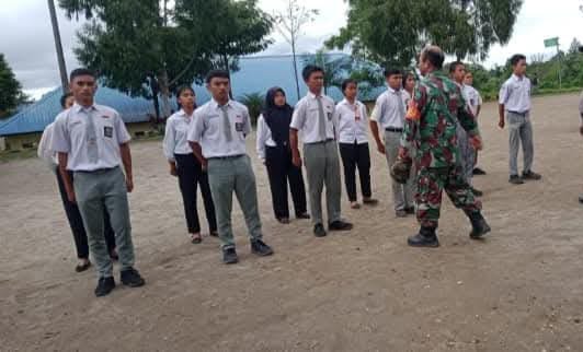 Babinsa Serda Jasa Ranto Simamora saat beri wawasan kebangsaan kepada siswa siswi SMA Negeri Sumbul