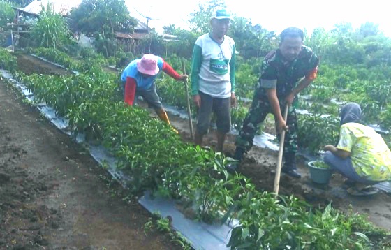 Serma Supriadi mengatakan kegiatan yang ia lakukan adalah membersihkan gulma tumbuh subur di parit antar bedengan tanaman Cabai.