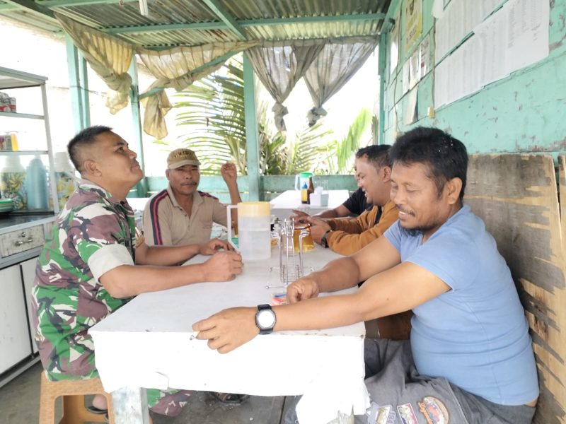 Keakraban tersebut dilihatkan saat warga dan babinsa sedang melakukan bincang di depan Warung masyarakat di desa lae langge.