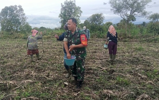 Untuk itulah kami sebagai aparat teritorial di wilayah, menindak lanjutinya dengan memberikan dorongan motivasi kepada petani dan memberikan pendampingan, agar petani tetap produktif untuk bercocok tanam sehingga produksi pertanian tetap terjaga untuk mendukung kebutuhan pokok masyarakat,” imbuhnya