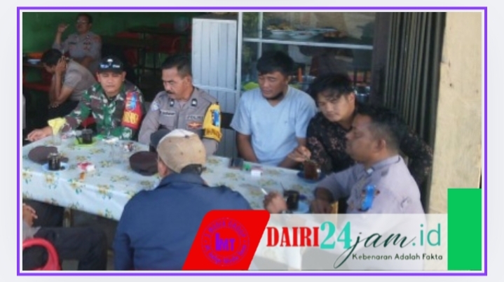 DAIRI24JAM—Babinsa Koramil 06/Kerajaan Serda Rudy Limbong dan Bhabinkamtibmas berkomunikasi sosial ( Komsos ) bersama warga binaan dengan menemui warga yg berada di warung di desa Sukaramai, Kecamatan Kerajaan, Kabupaten Pakpak Bharat-Sumut, Rabu (26-07-2025)..