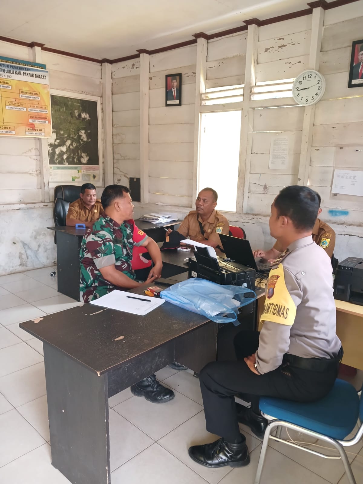 Dairi24jam || PAK-PAK BHARAT—- Dalam rangka meningkatkan sinergitas di wilayah binaan, Babinsa Koramil 07/Salak Serda S.Boangmanalu melaksanakan kegiatan Komunikasi Sosial (Komsos) dengan Aparat Desa Silimakuta bertempat di Kantor Desa singgabur  Kecamatan Sttu julu Kabupaten pakpak bharat, jumat (14/05/2024).