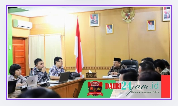DAIRI24JAM —Wakil Bupati Dairi Wahyu Daniel Sagala bersama Sekretaris Daerah Surung Charles L. Bantjin, menerima Audensi dari Auditor Ahli Madya Badan Pengawasan Keuangan dan Pembangunan (BPKP) Sumatera Utara, Ata Sumirta beserta tim di Ruang Rapat Bupati Dairi Kamis (06/03/2025).