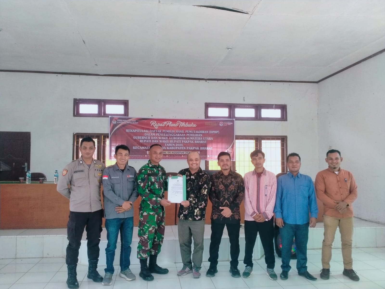 Dairi24jam || Tinada—Babinsa Koramil 06/Kerajaan Serma AS.Siregar menghadiri undangan kegiatan Rapat Pleno Rekapitulasi Daftar Pemilih Hasil Pemutakhiran (DPHP) Tingkat Kecamatan bertempat di Aula Kantor Kecamatan Tinada ,Kabupaten Pakpak Bharat,Selasa (06-08-2024)..